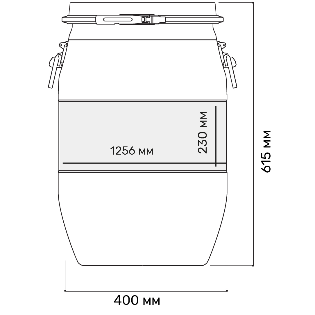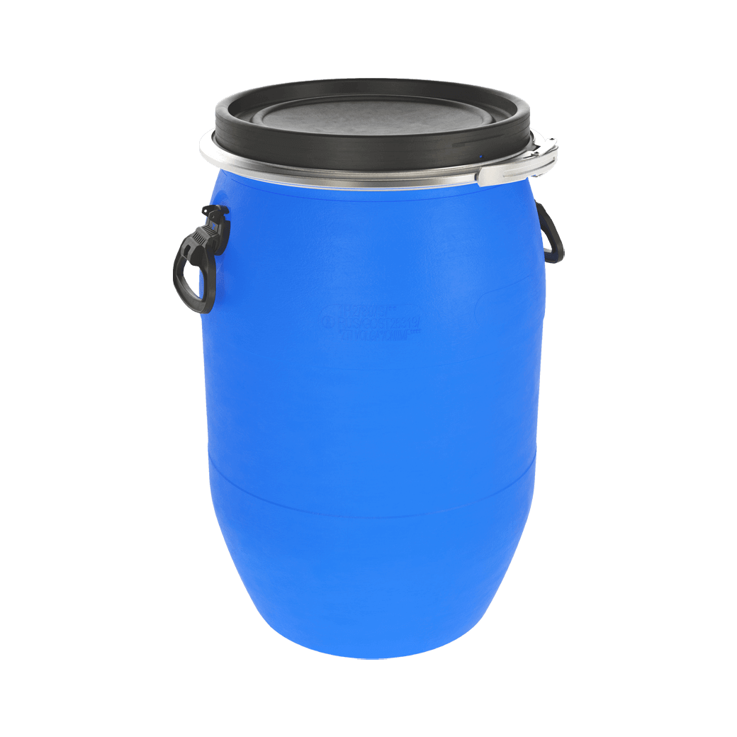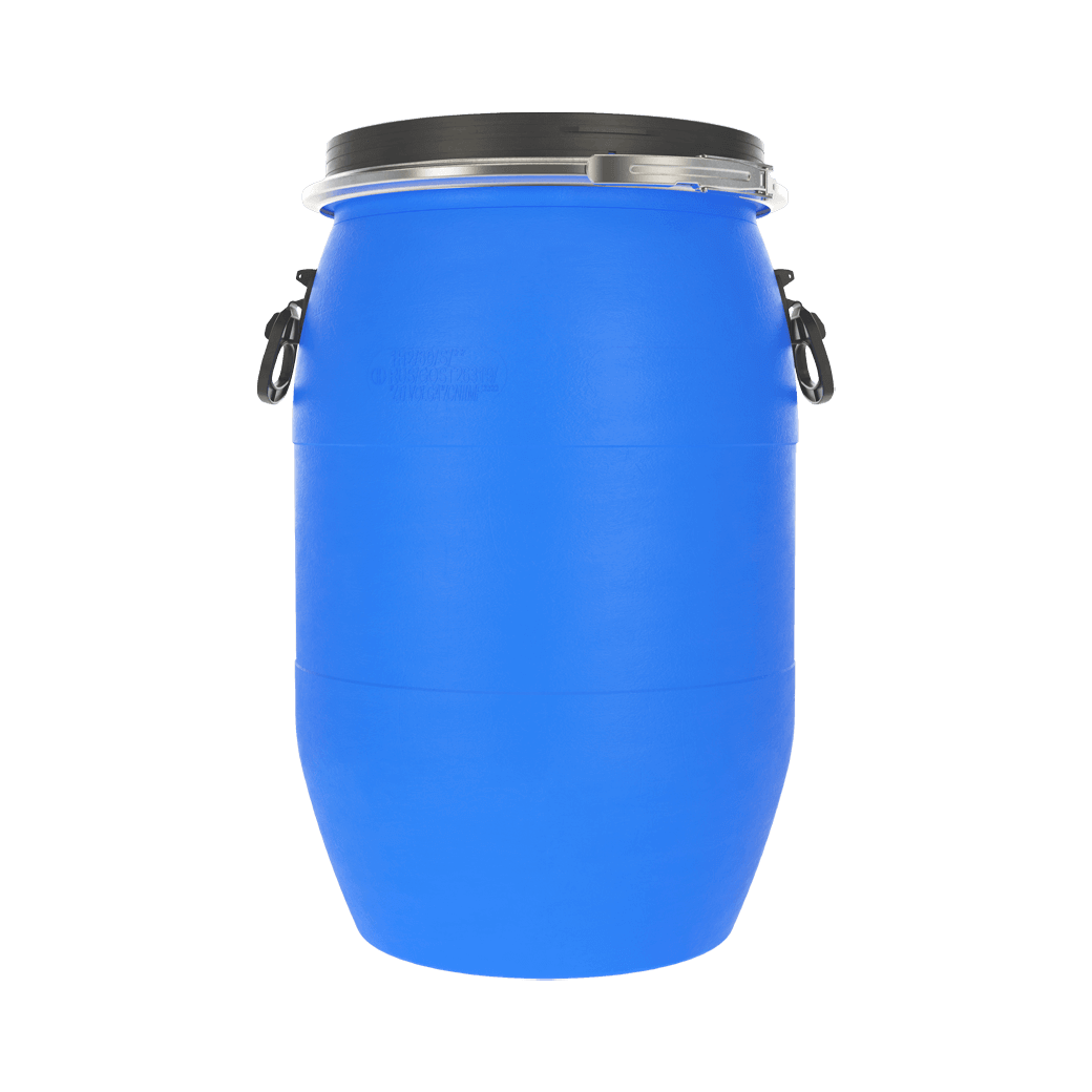 Тип - Open Top, бочка пластиковая пищевая с крышкой и хомутом, объем 65 литров. Возможно нанесение печати (логотипа).