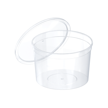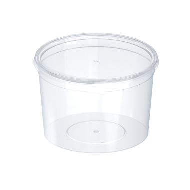 Пластиковая банка 500 мл (Ø 110 мм) — прозрачная порционная тара из сертифицированного пищевого пластика для производителей рыбных пресервов, икры, мёда, готовых салатов, джема, солений, творога, соусов и приправ.