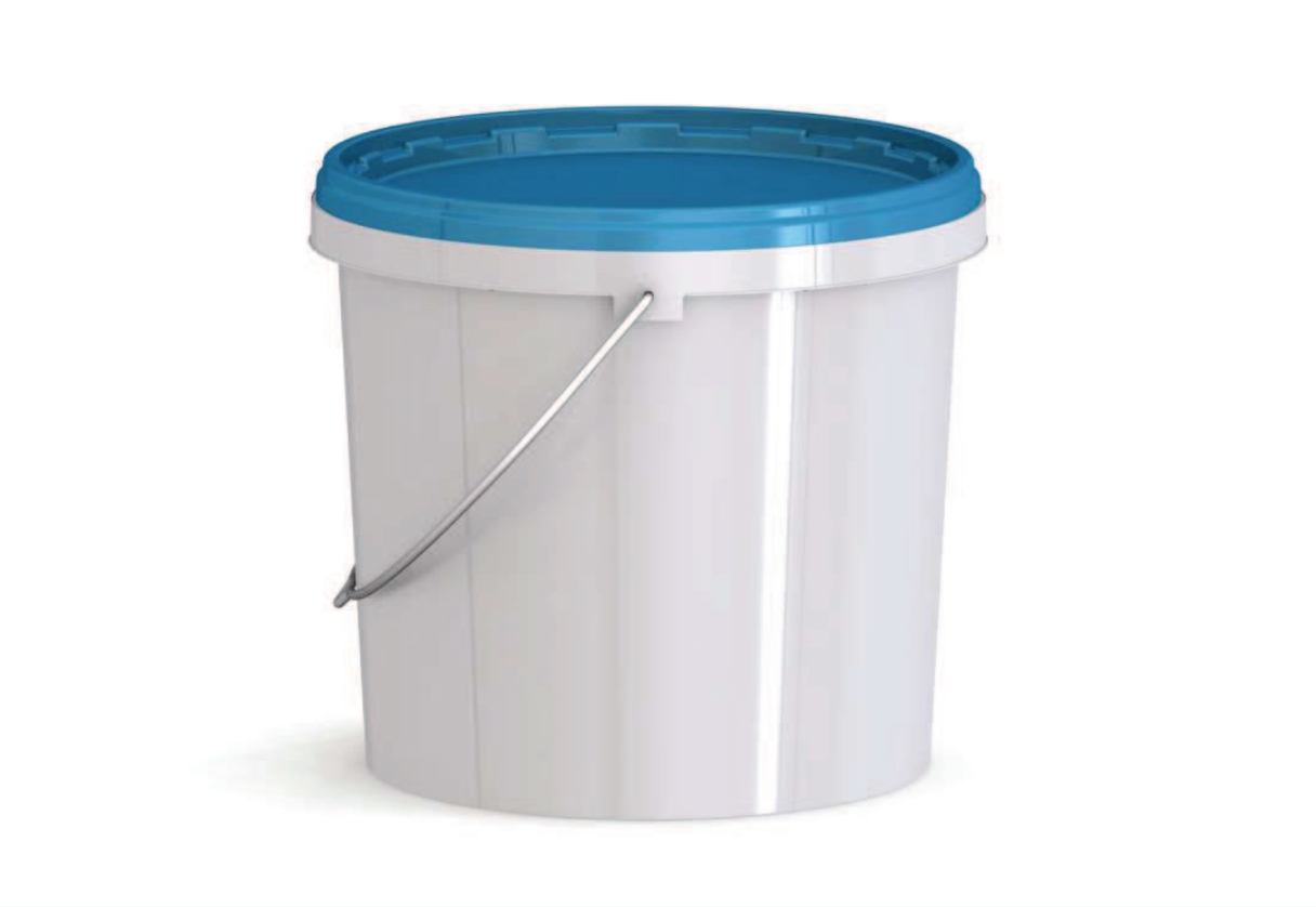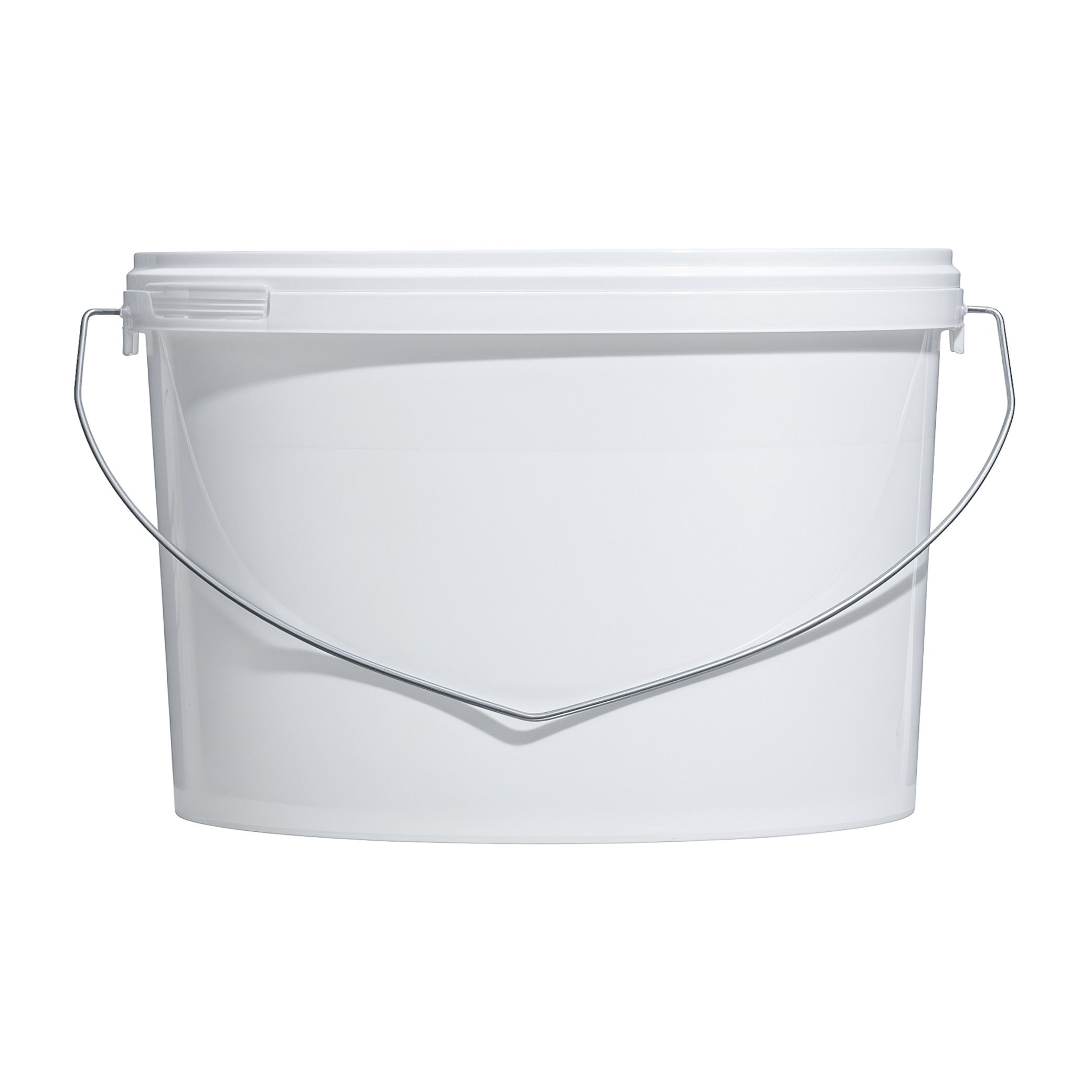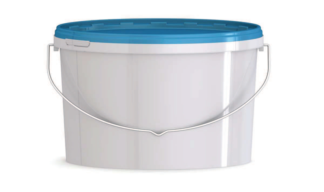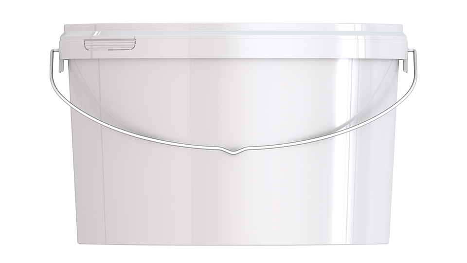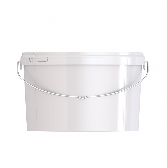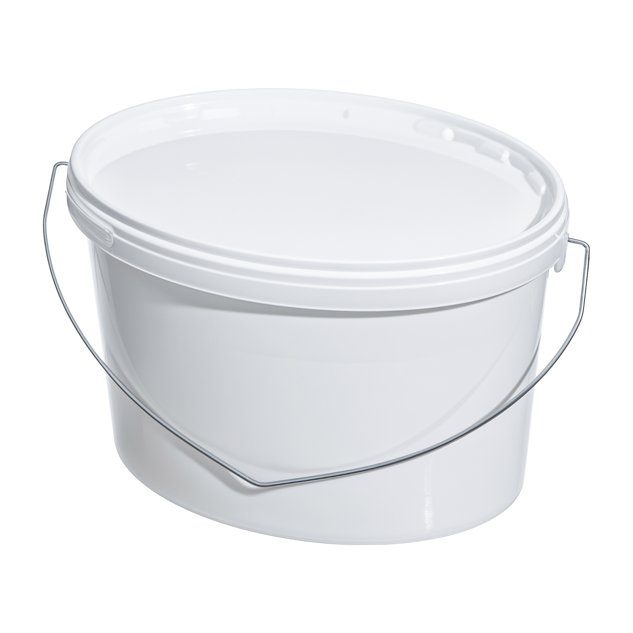 Пластиковое ведро с металлической ручкой объемом 5800 мл овальной формы, с пластмассовой крышкой.