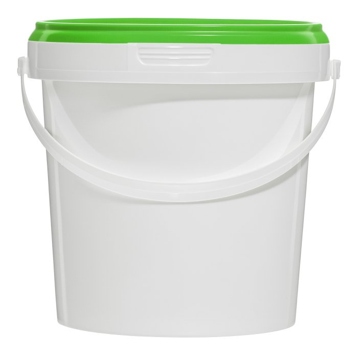 Ведро из пищевого пластика объемом 1,2 литра с зеленой крышкой. Приобрести можно как оптом, так и в розницу, на всей территории России, доступен самовывоз в Москве. Есть услуги офсетной/IML печати как на корпусе так и на крышке.