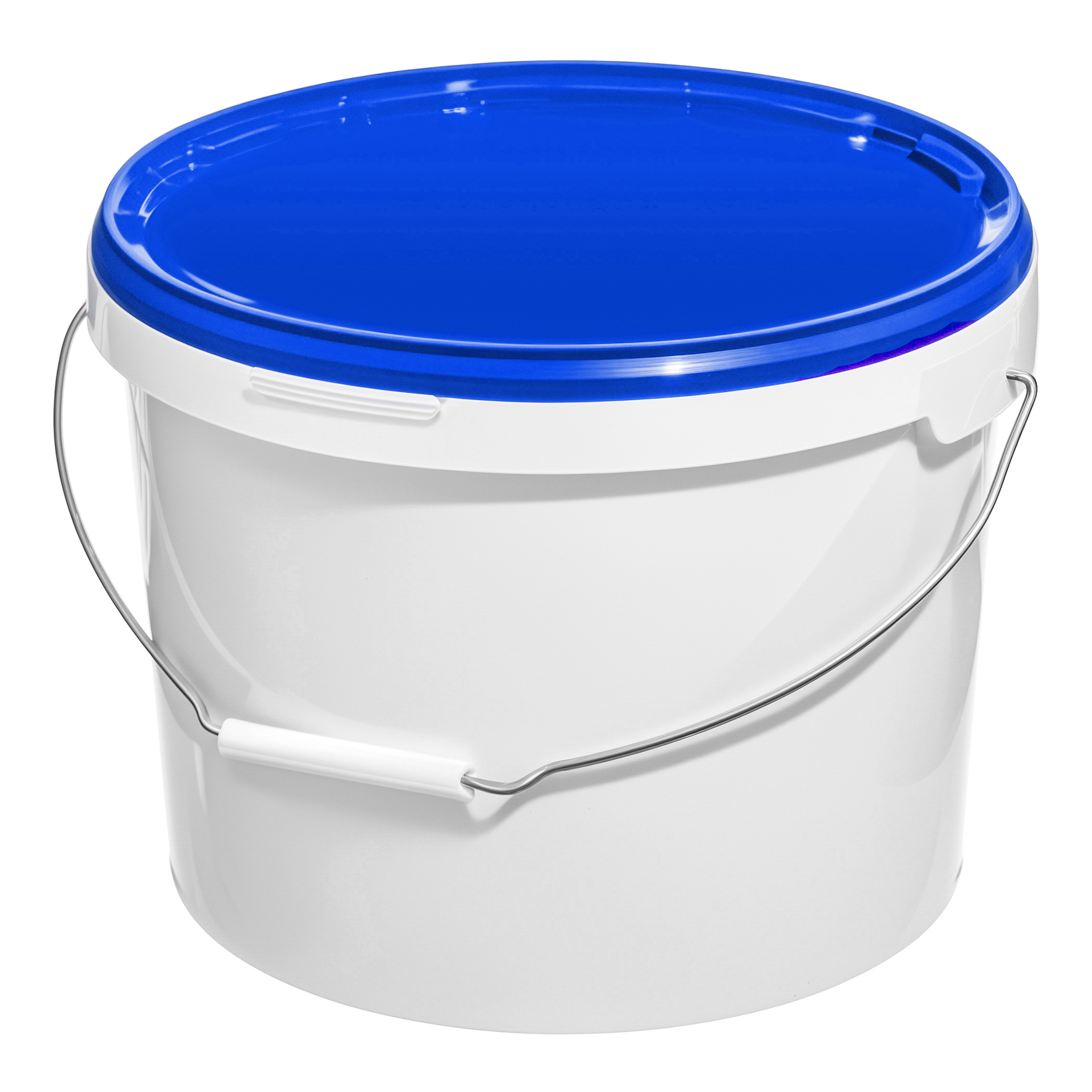 Белое ведро с металлической ручкой и крышкой синего цвета, объем 11,3 литра, изготовленное из высококачественного пластика. Имеет удобную ручку, которая обеспечивает надежную переноску тяжелых строительных смесей, ЛКМ, бытовой химии. Крышка плотно закрывается, что предотвращает попадание пыли и грязи внутрь ведра, а также препятствует высыханию его содержимого. Ведро универсально - подходит для использования как в домашних условиях (для заготовок, солений), так и в ритейле или для отделочных работ (для краски, для сухих смесей, растворителей и т.п.).