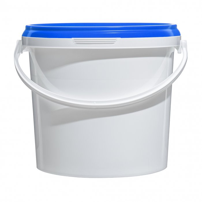 Пластмассовое ведро объемом 3,9 литра с герметичной синей крышкой и ручкой для удобства переноски. Изготовлено из прочного пищевого пластика, можно использовать как в быту, так и в промышленных целях - для хранения продукции, сухих строительных смесей, мелкого крепежа, химических жидкостей и так далее.