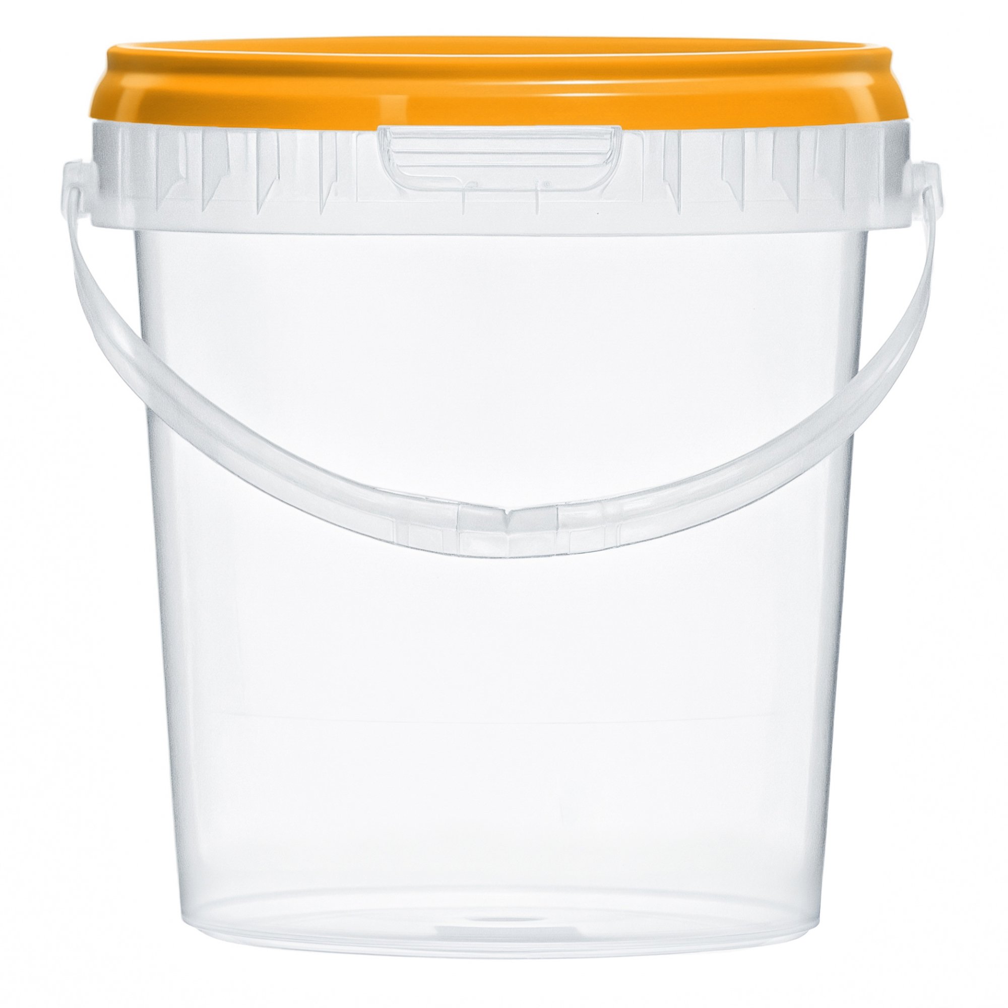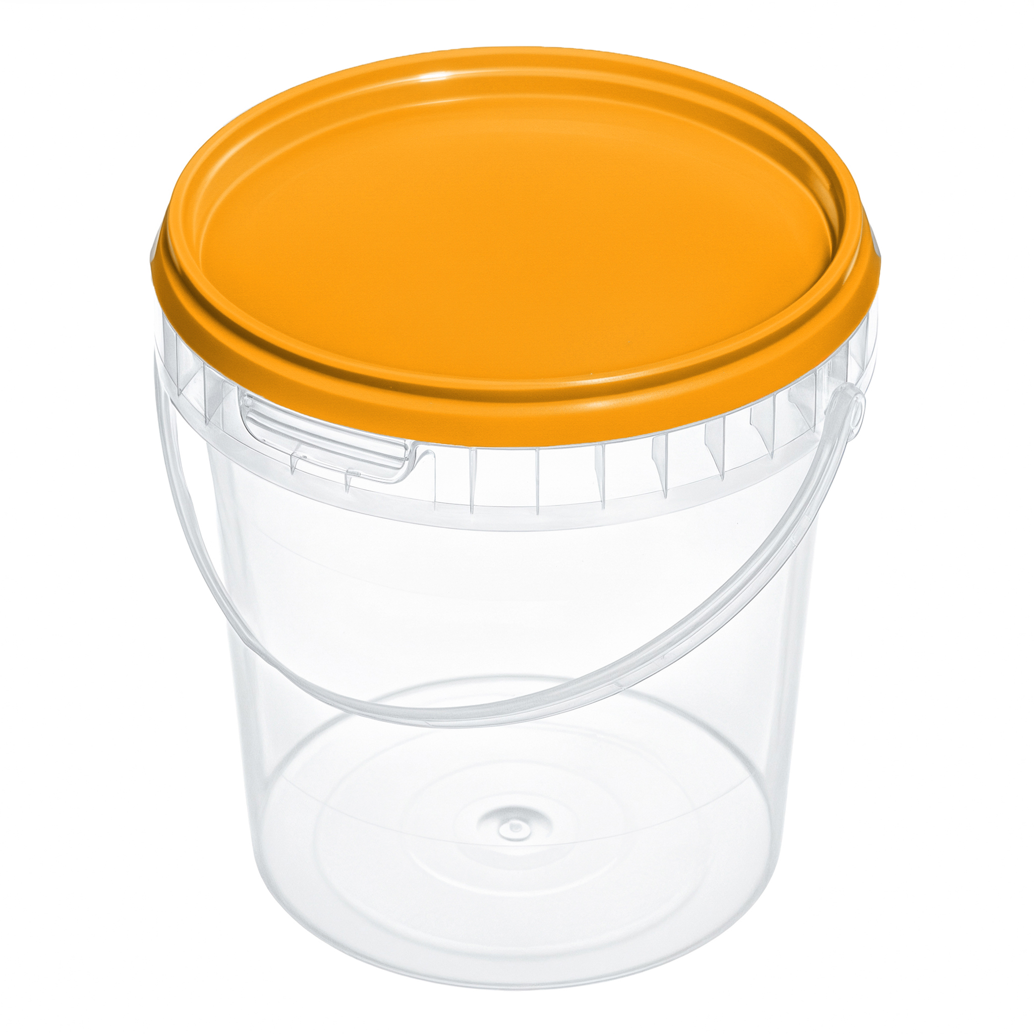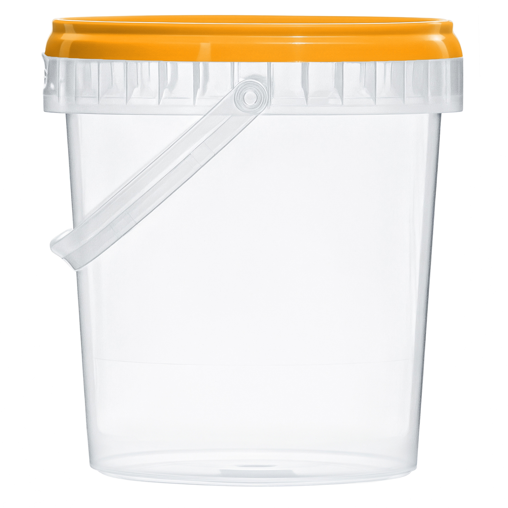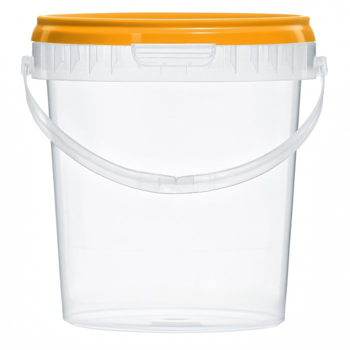 Удобное и практичное ведерко объемом 850 миллилитров, с ручкой и крышкой оранжевого цвета. Позволяет вместить достаточное количество продуктов, воды или других необходимых вещей. Ведерко изготовлено из прочного прозрачного пластика, благодаря чему вы всегда сможете видеть содержимое без необходимости открывать крышку.